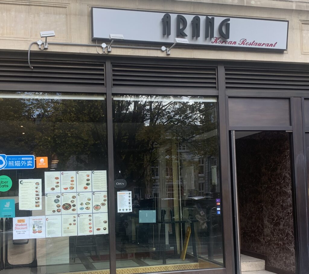Smart modern Korean restaurant with large menu of classic kimchi cabbage and banchan side dishes.