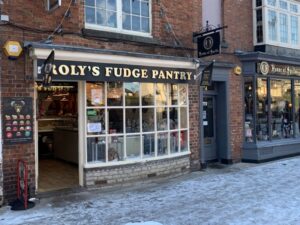 We make our perfectly crumbly fudge in the shop while you watch! Real fudge made from butter, sugar and milk…we use all natural ingredients. We look forward to offering you a taste of warm fudge from the slab.”